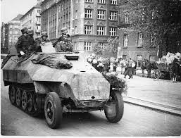 Vojáci Bojové skupiny "Der Führer" na obrněném transportéru sdkfz.251 při Pražském povstání.